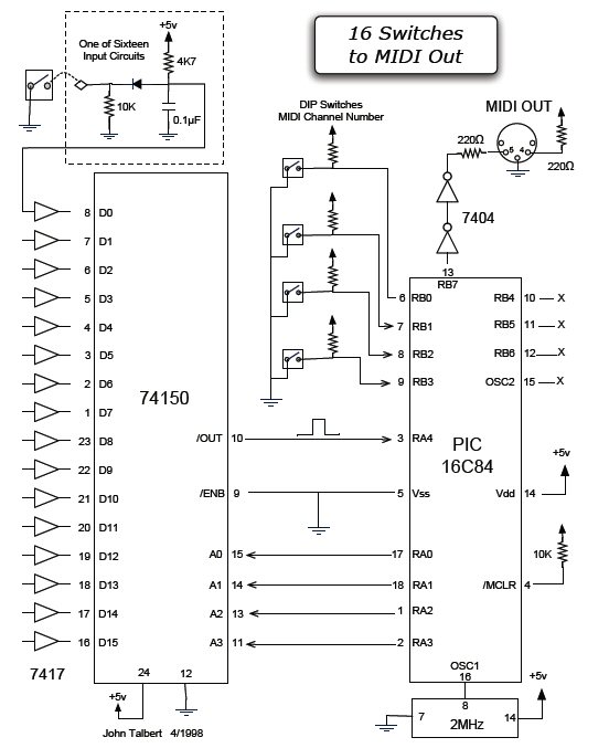 16 Switch MIDI Out trigger schematic (PDF Format)
